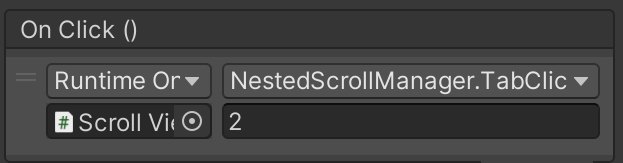 NestedScrollManager.cs에 다음 파트를 추가하고 Inspector에서 Btn들을 지정해주자.