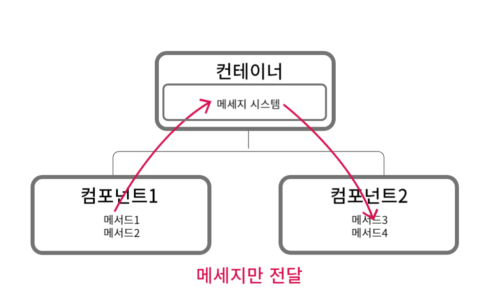 컴포넌트들은 메세지 값과 커플링될 뿐이지 컴포넌트끼리는 디커플링 상태를 유지하는 것이다.